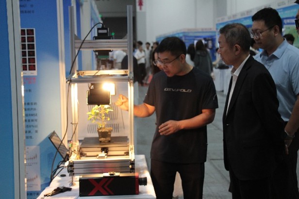 在IU22浙江省高校学生科技创新优秀成果展览区,楼雄伟教授团队展示了阔叶树种苗表型检测平台,通过两部RGB相机与一部高光谱相机的协同作业,能够在3秒内精准采集一颗种苗的株高、地径、冠幅、冠层四个外观表型数据,以及氮、磷、钾、水分、叶绿素含量五个生理指标数据,显著提升了植物表型数据采集的速度与精度。目前,该平台已实现对桦木、楠木、杨属三种树种的表型数据提取,且具备很强的泛化性能,通过补充更多种类树种的训练样本,不仅可以拓展检测树种范围,还能进一步提高已有树种的表型检测精度,在林业育种、苗木质量评估、生态研究等领域具有广阔的应用前景。