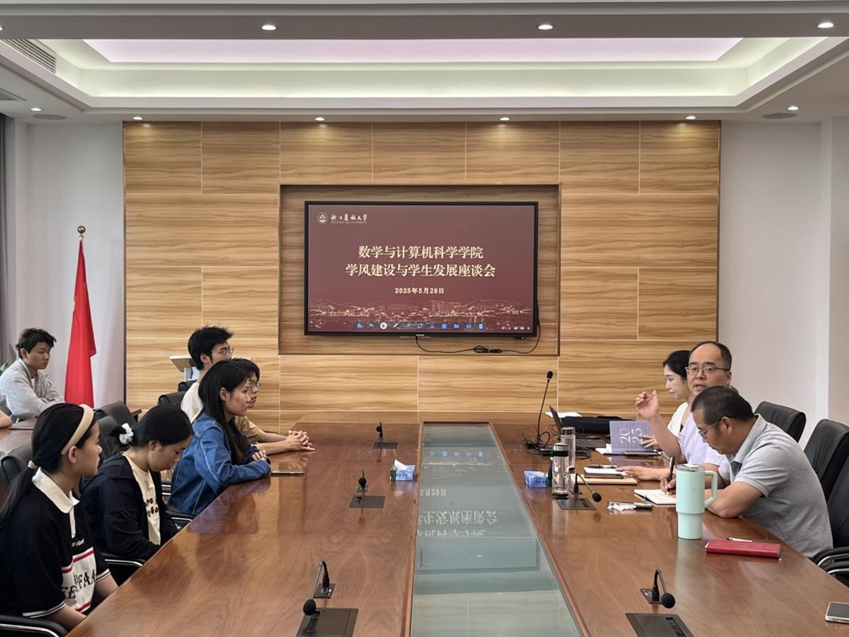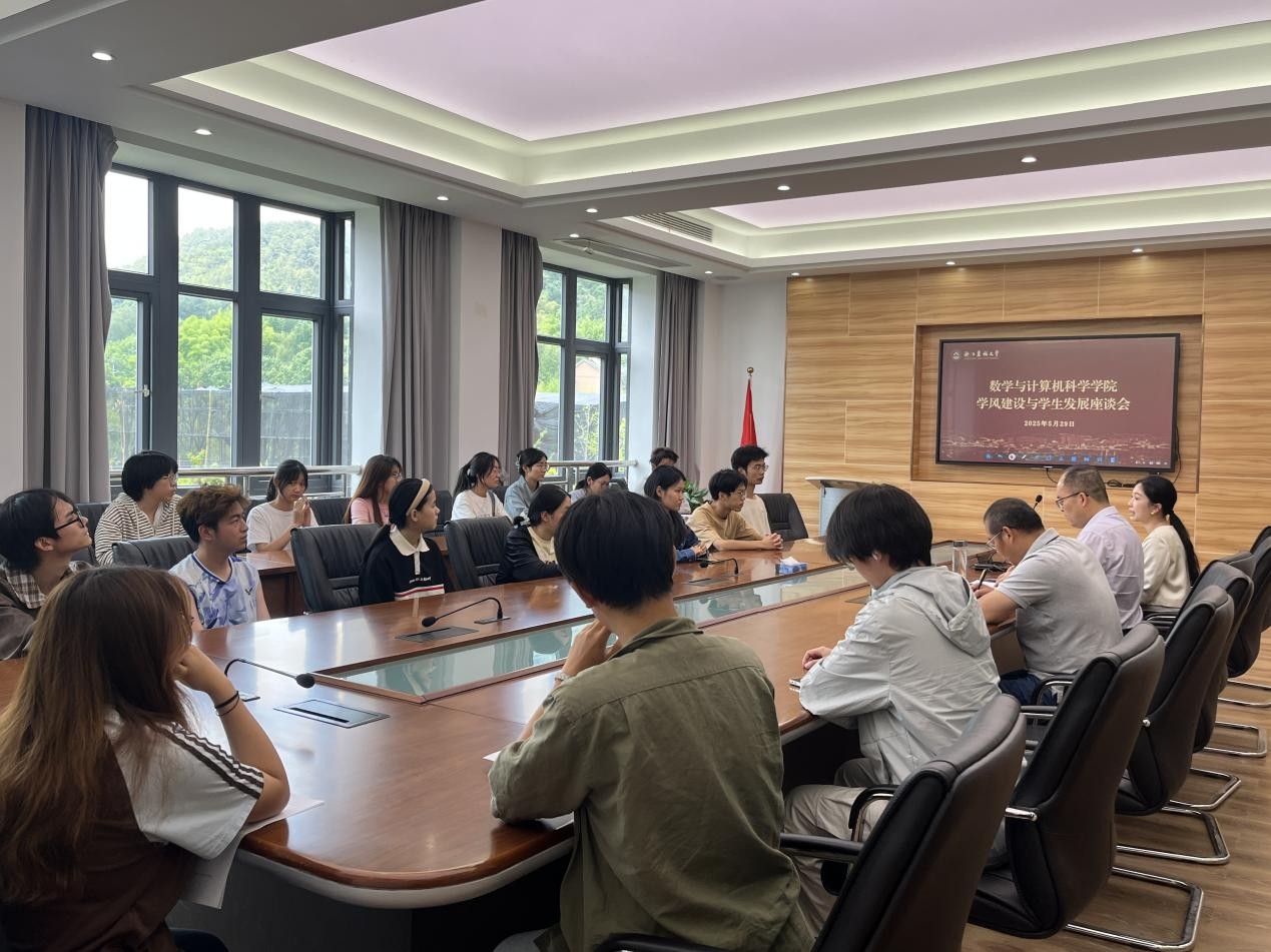 5月29日,数学与计算机科学开元平台于学11-304会议室召开学风建设和学生发展座谈会。院党委书记何振波、党委副书记孙晓民、学生办主任袁晓燕与学生代表20人进行了面对面交流。