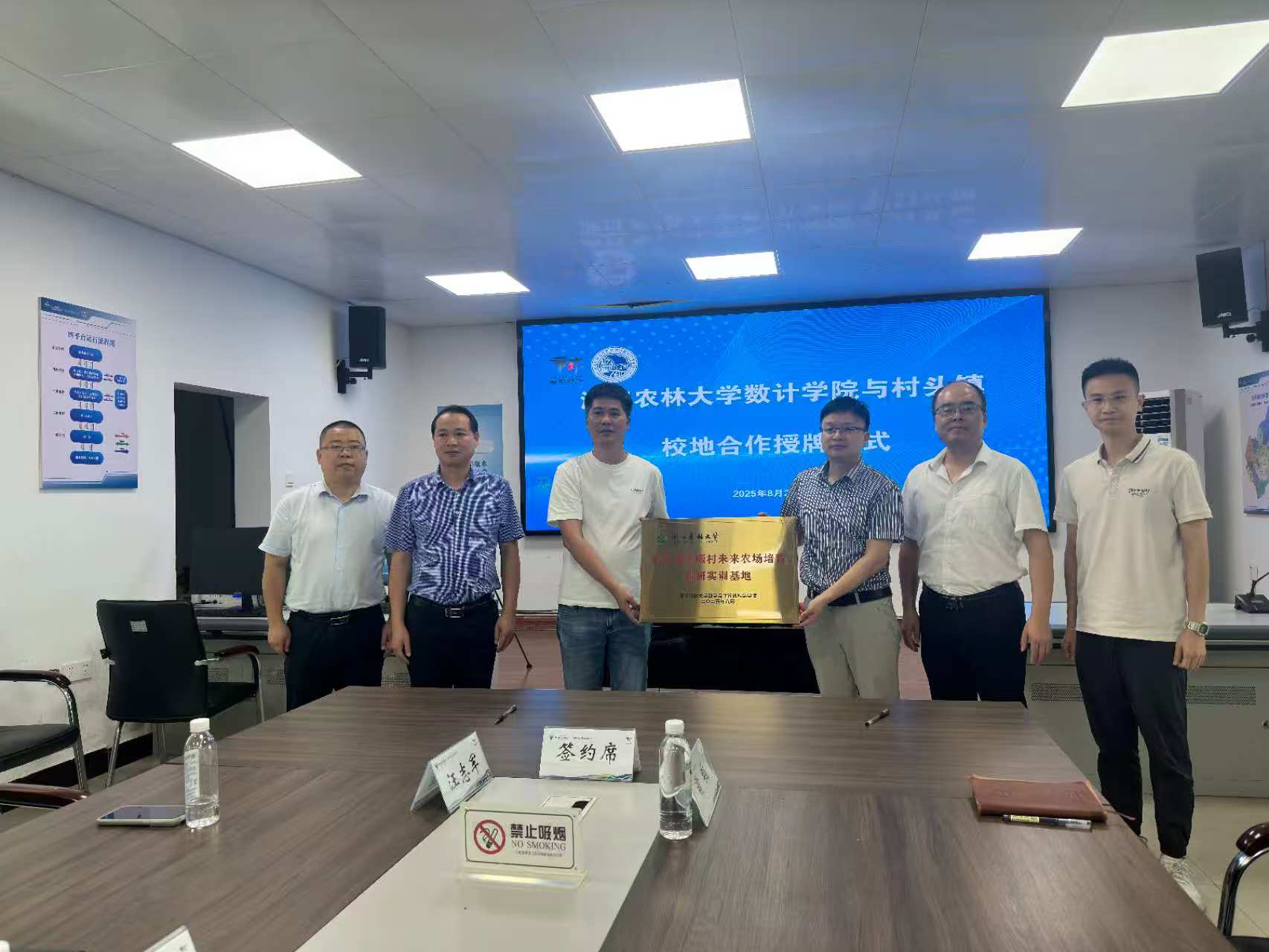 在双方人员共同见证下,冯海林与余志仁代表双方签署协议,。根据协议约定,除科技赋能产业、人才培养培训外,双方还将在科研项目合作与智慧乡村建设领域深度协同:联合申报省市级科技项目,围绕乡村产业、生态保护、碳汇经济开展研究,推动高校科研成果在村头镇转化落地;同时协助村头镇建设未来农场、数字化高标农田系统、物联网监测网络,探索农产品溯源、品牌提升、数字营销新模式。仪式上,开元平台还向村头镇授牌了“村头镇石畈村未来农村科研实训基地”。