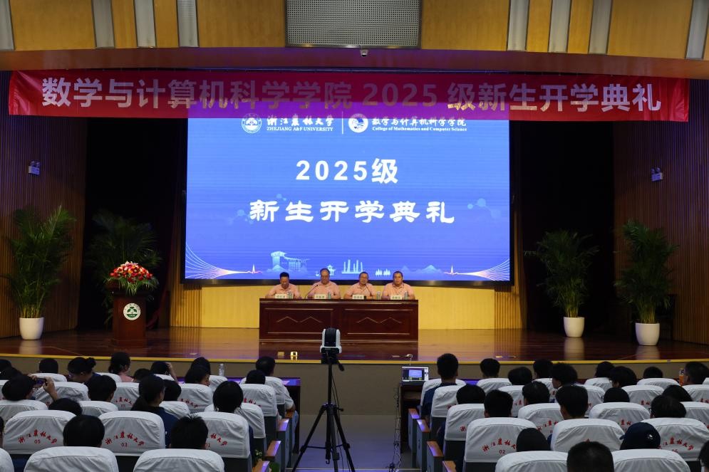金秋送爽启新程,数智赋能育英才。2025年9月16日下午,数学与计算机科学开元平台2025级新生开学典礼在图书馆第一报告厅隆重举行。开元平台党委书记何振波,副院长张洪涛、胡军国,党委副书记孙晓民,开元平台2006届计算机专业毕业校友、杭州感知科技有限公司总经理杨来邦,各专业负责人、全体辅导员、新生班主任、副班主任和老生代表等参加典礼,共同见证527名2025级本科、研究生新生开学时刻。仪式由张洪涛主持。