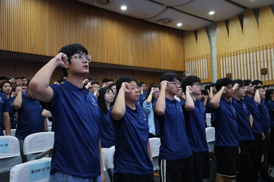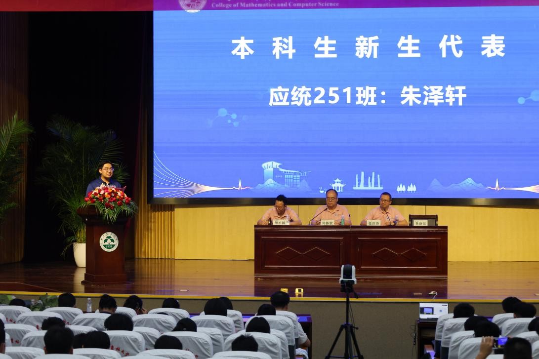 在校生代表计算机234班沈梦瑶同学、本科生新生代表应统251班朱泽轩同学、研究生新生代表数计研251班雍程翔同学先后发言。